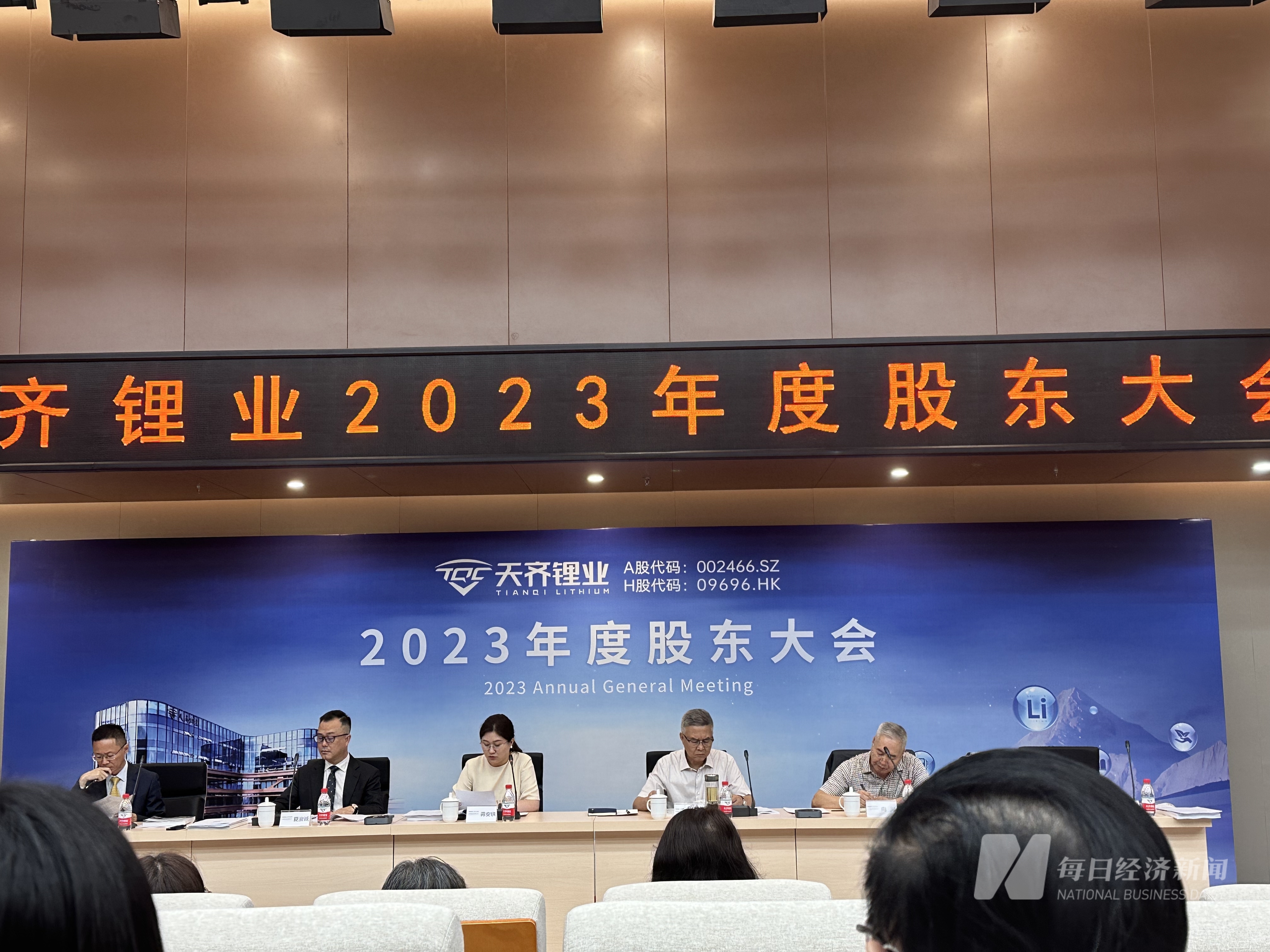5月28日下午,天齐锂业召开了2023年年度股东大会。天齐锂业董事长蒋安琪、董事会名誉主席蒋卫平、总裁夏浚诚、财务总监邹军等高管出席股东大会。这也是蒋安琪首次以天齐锂业董事长身份参与年度股东大会。