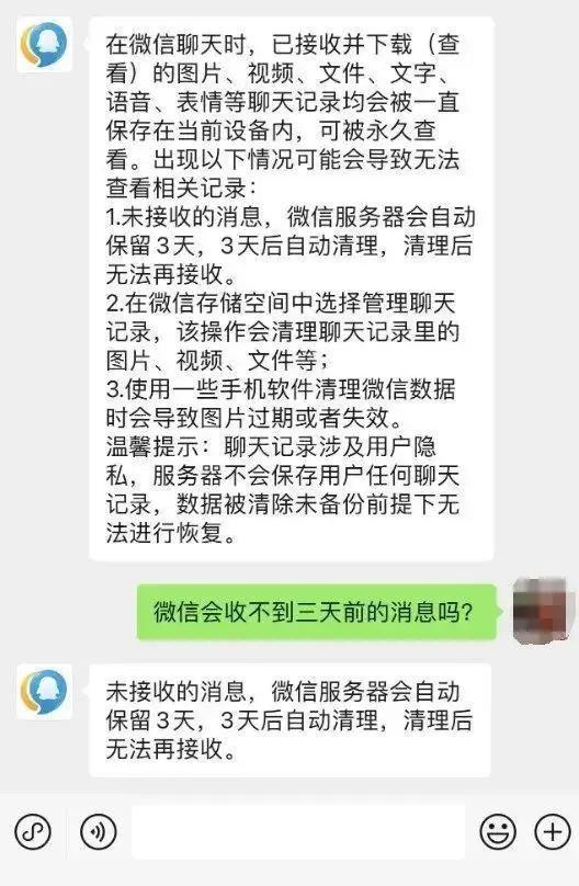 此外,如果用户存在未接收的消息,则微信服务器将自动保留相关消息3天,在此之后将会进行清理,并且清理后无法再次接收。(罗宁)