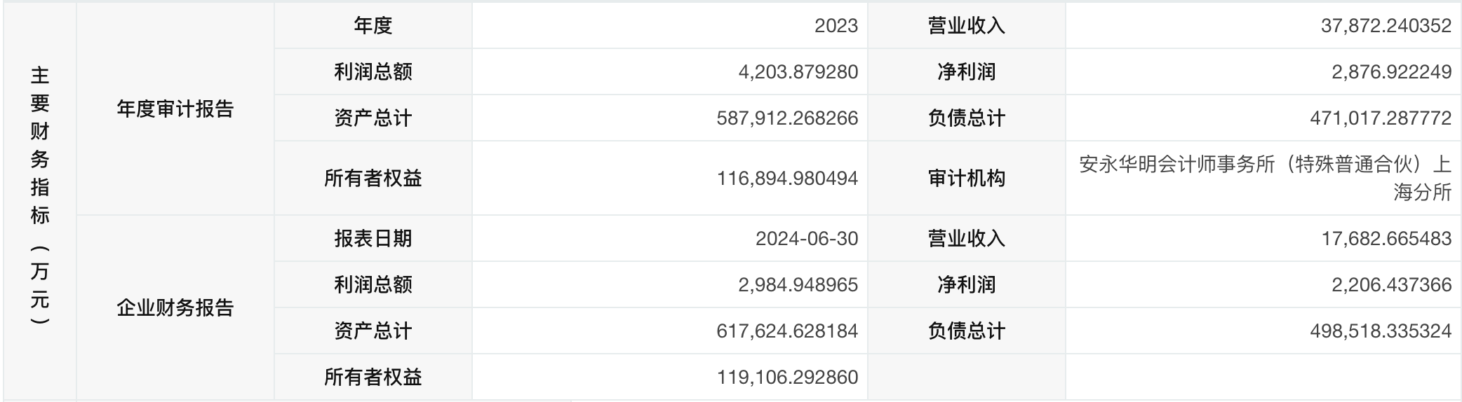 2023年,标的企业实现营收3.79亿元,净利润2876.92万元。2024上半年,营收1.77亿元,净利润2206.44万元,期末资产总计61.76亿元。