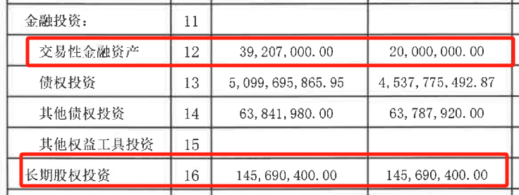 其安全性较高的债权投资51亿元,同比增长12%,远不及交易性金融资产,此外,该行还持有长期股权投资1.5亿元。