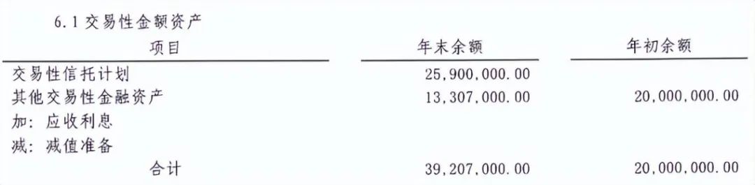 在交易性金融资产中,淮北农商行偏爱风险投资的特点也非常显著,其高风险的交易性信托计划从上一年度无数据到2023年飙升至2590万元,并且占比交易性金融资产总额的66%,增速惊人。