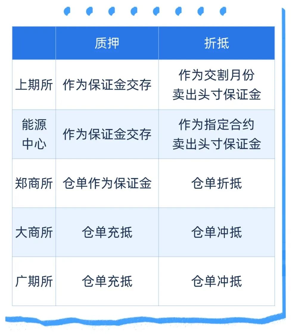 各交易所对质押和折抵业务命名有所不同,但本质是一样的,名称汇总如下:
