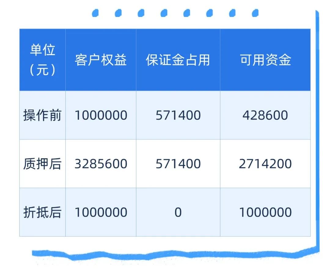 2、质押资金仅用于交易保证金,质押金额需不小于10万元,发生交易亏损、出金、相关费用等款项均需以自有资金进行结算。
