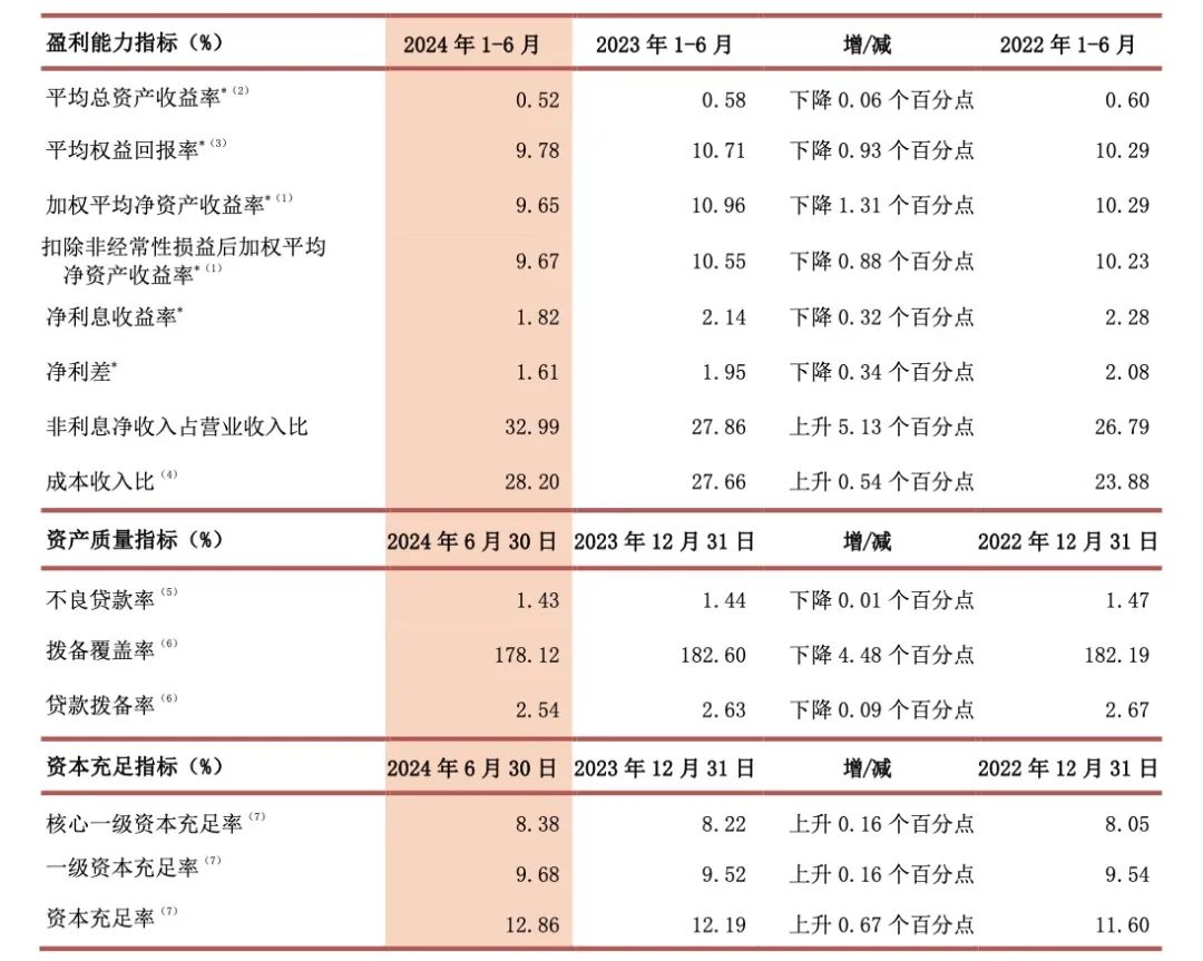 截至报告期末,不良贷款率1.43%,比上年末下降0.01个百分点。拨备覆盖率178.12%,比上年末下降4.48个百分点;贷款拨备率2.54%,比上年末下降0.09个百分点。