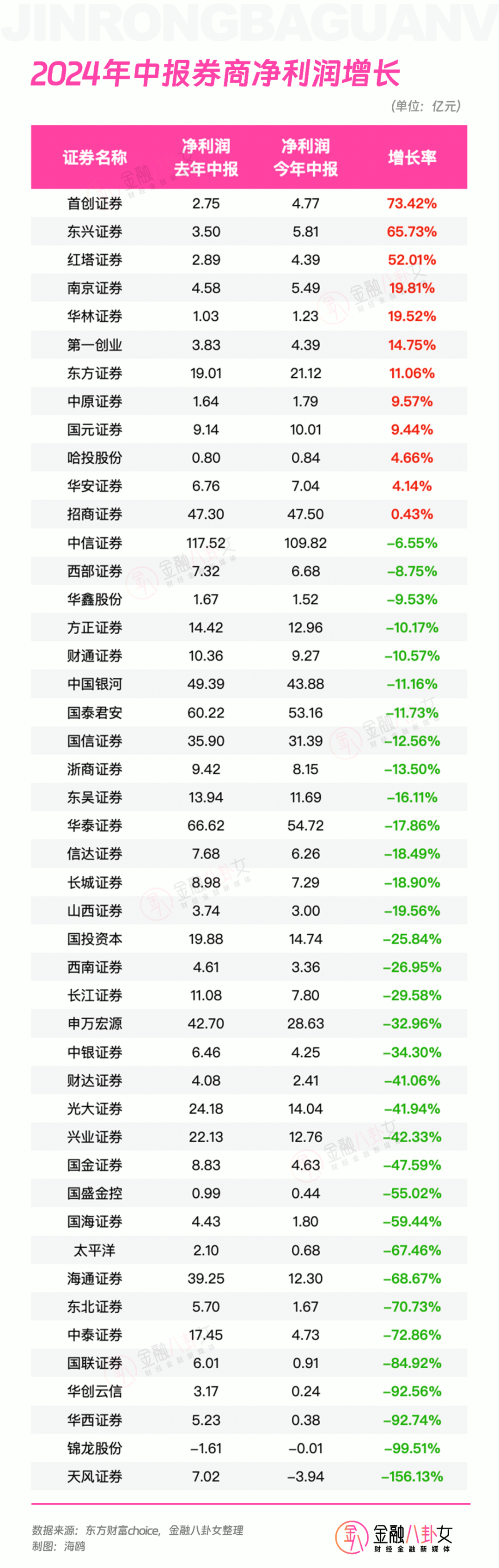 上市券商中,仅有中信证券一家上半年净利润超过了100亿。