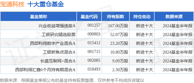 根据2024基金半年报公募基金重仓股数据,重仓该股的公募基金共6家,其中持有数量最多的公募基金为兴业收益增强债券A。兴业收益增强债券A目前规模为48.84亿元,最新净值1.365(10月10日),较上一交易日上涨0.29%,近一年上涨4.24%。该公募基金现任基金经理为周鸣丁进。周鸣在任的基金产品包括:兴业定开债A,管理时间为2014年3月13日至今,期间收益率为77.93%;兴业稳固收益一年理财债券,管理时间为2020年12月3日至今,期间收益率为9.28%;兴业添利债券,管理时间为2021年5月25日至今,期间收益率为12.58%。丁进在任的基金产品包括:兴业年年利定开债,管理时间为2015年7月6日至今,期间收益率为48.29%;兴业稳康三年定开债券,管理时间为2017年1月20日至今,期间收益率为21.76%;兴业聚华混合A,管理时间为2020年3月20日至今,期间收益率为38.35%。