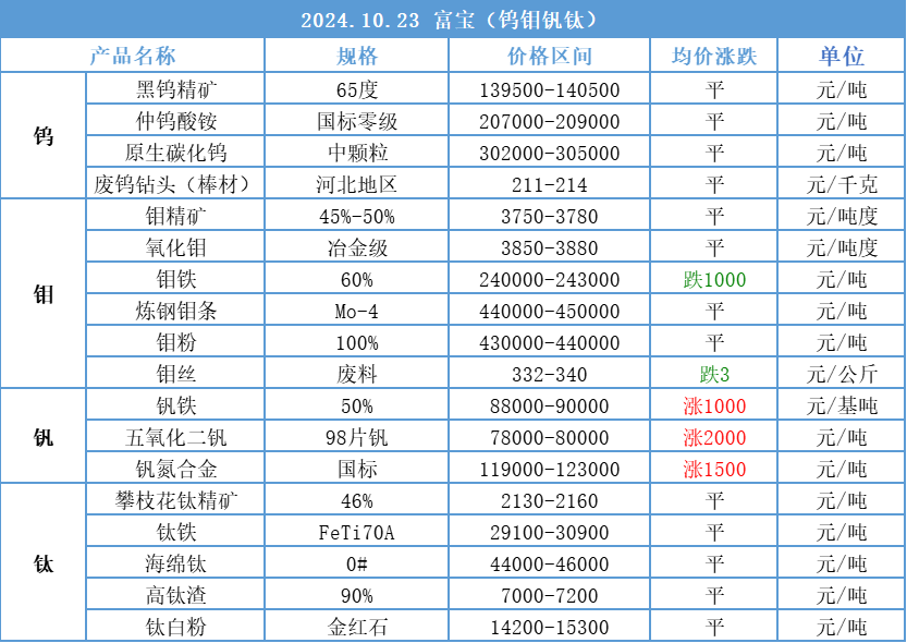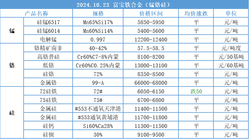 2024. 10 .23富宝铁合金小金属报价行情一览丨旺季未完,锰价咋就“带不动”?