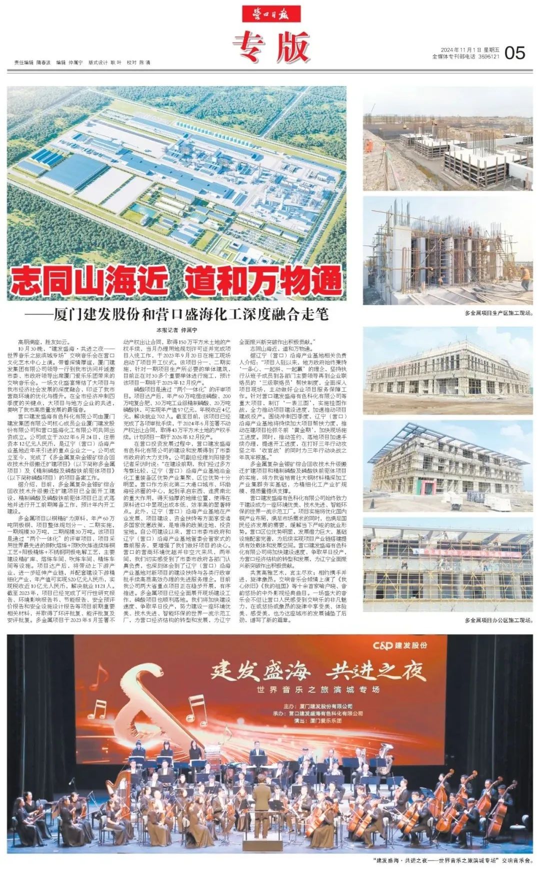 志同山海近,道和万物通。建发盛海多金属项目与磷酸项目的正式落地,将为当地培育产业集群、解决地方就业、带动上下游产业发展起到积极的推动作用。展望未来,建发股份与建发盛海将坚持“服务国家战略、服务区域经济发展、服务民生保障”的企业发展战略,积极融入产业链体系,不断探索新的合作空间,在新时代东北振兴、辽宁振兴中与各方携手同行,共赢发展。