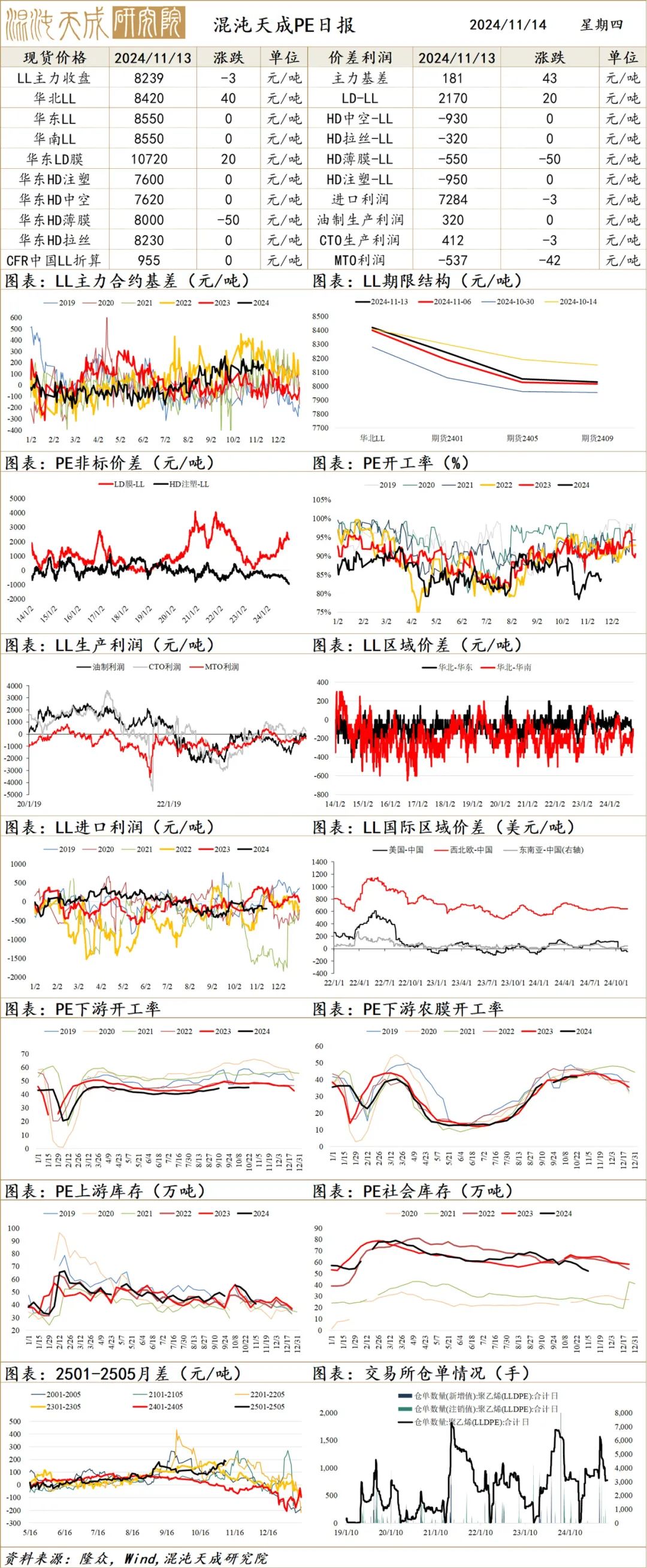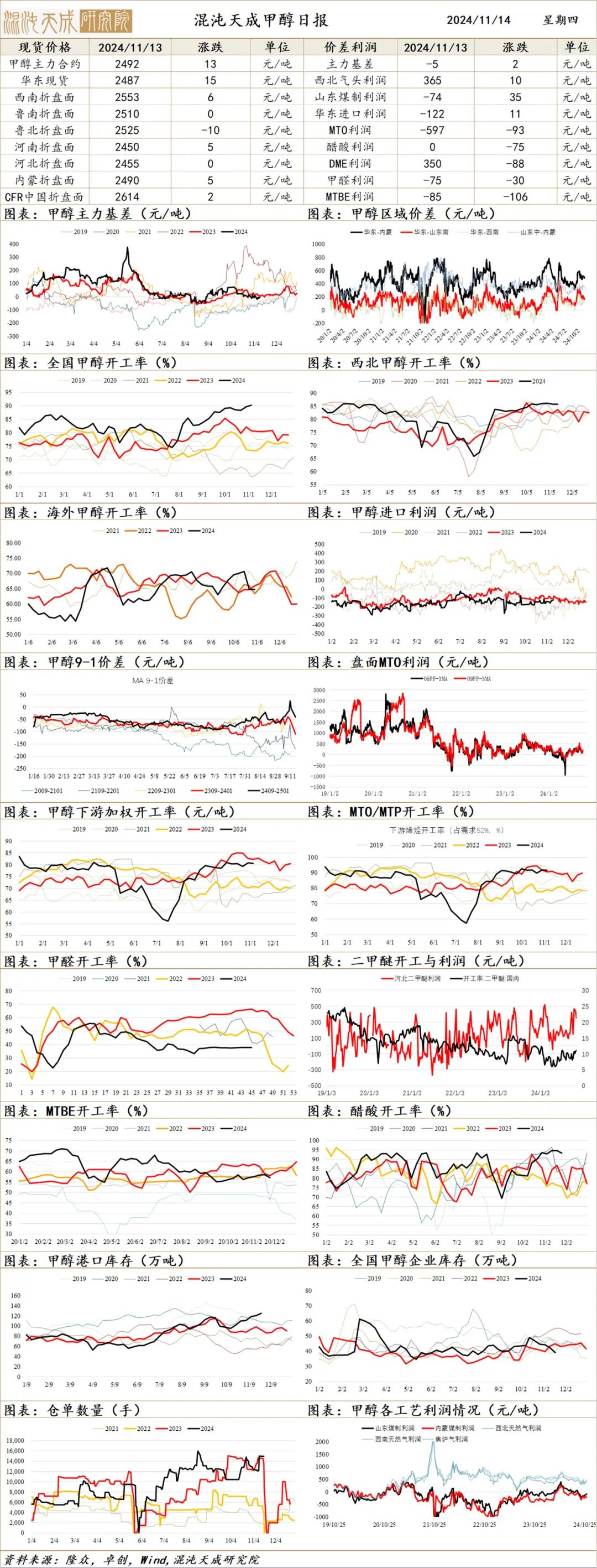 库存:截至11.13日,港口库存增4.6至125.3万吨,到港高位;工厂库存降3至39万吨,待发订单高位。