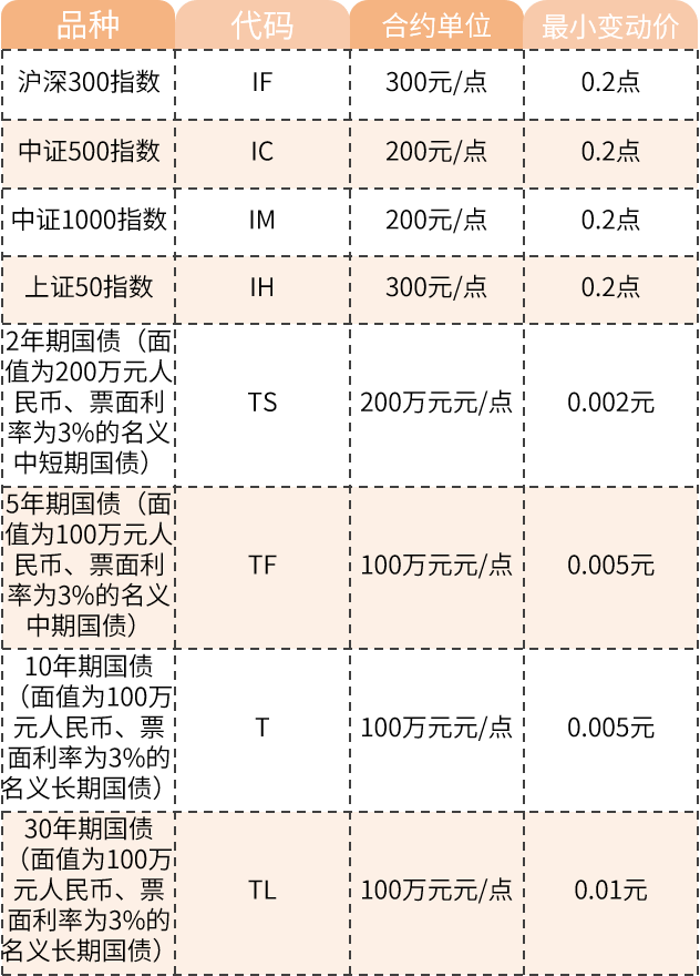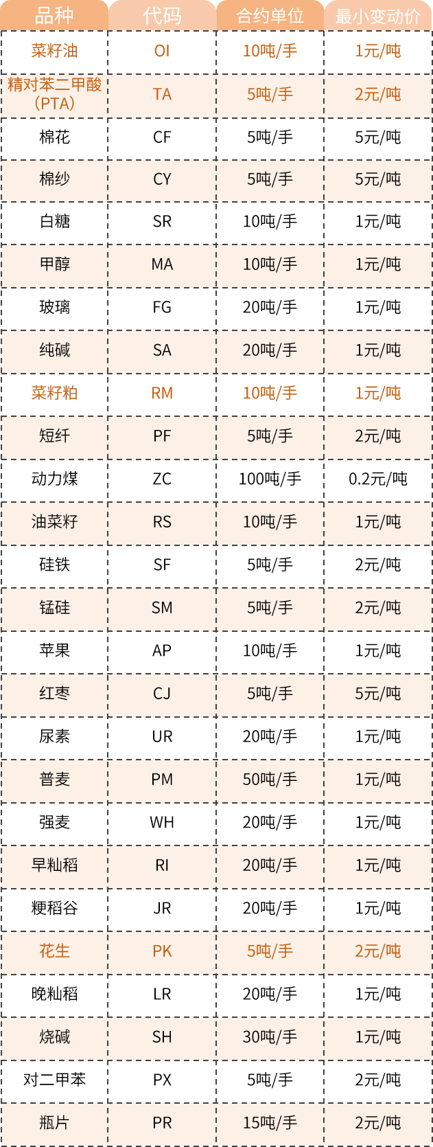 期货品种汇总表