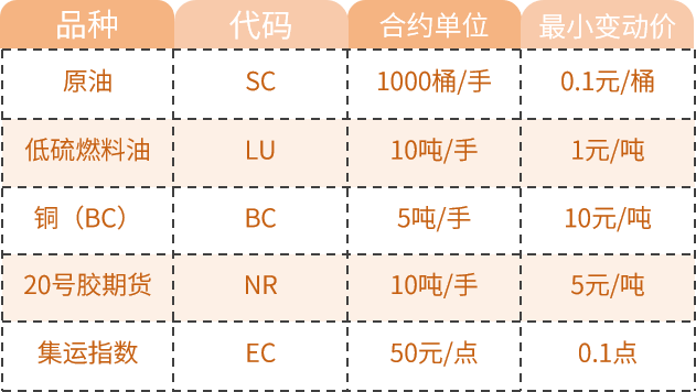 (内容来源各家交易所期货合约)