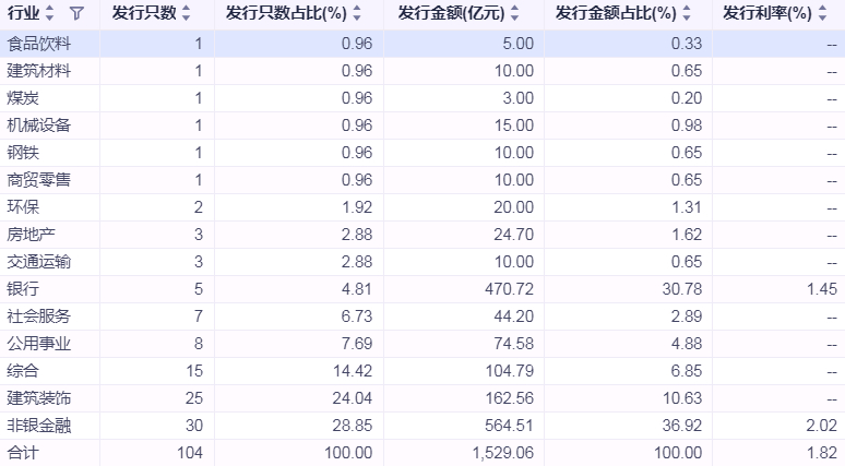 产业债发行情况(按行业):