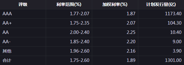 同业存单发行情况: