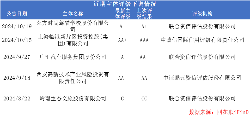 近期主体评级下调:
