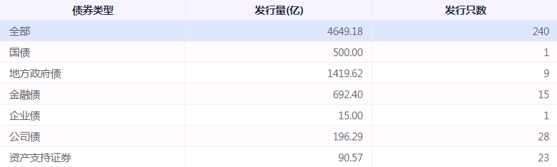 全市场债券发行情况统计: