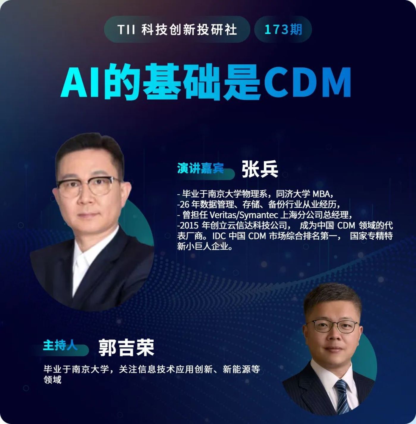 最近,钛资本邀请中国CDM领先厂商云信达科技的创始人张兵进行分享,为大家带来一些AI投资热点下的“冷思考”。主持人是钛资本郭吉荣,他毕业于南京大学,关注信息技术应用创新、新能源等领域。以下为分享内容: