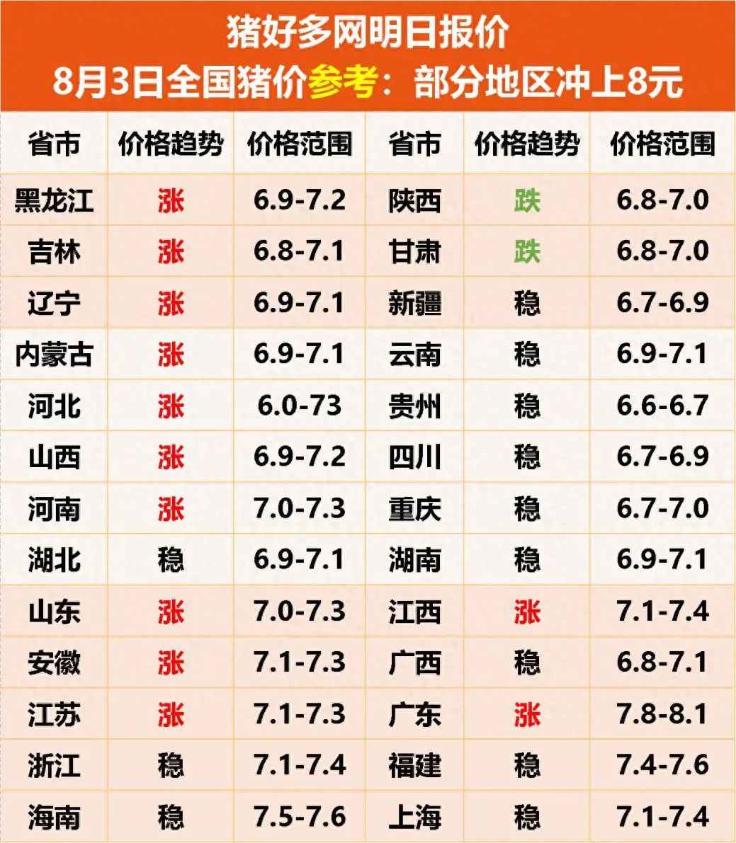 8月3日最新猪价行情!规模猪场强势拉涨,猪价攻势猛烈!