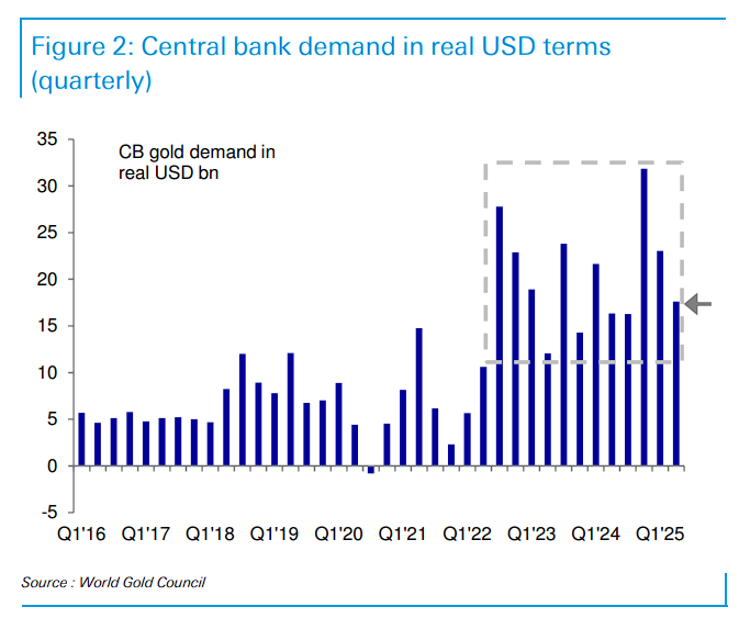 德银认为,这一变化尤为关键,因为央行需求在近年来一直是推动金价上涨的重要力量。