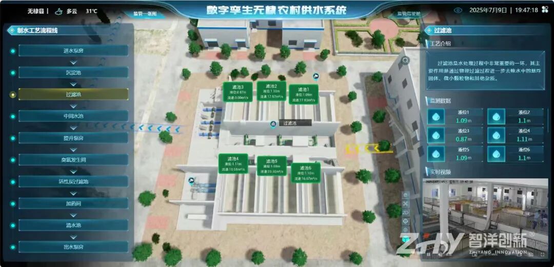 智洋创新以助力农村供水安全保障为目标,打造无棣县农村供水数字孪生系统,将水源地、水厂、管网和末梢用户全面纳入同一数字体系,实现了供水业务的全流程数字化、可视化和智能化管理。