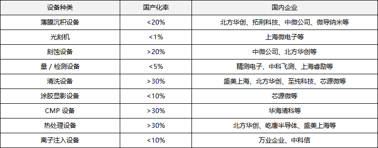 不同类型的半导体设备国产化率呈现出差异化的态势。