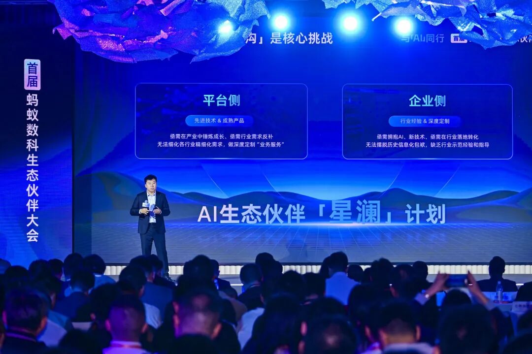 首先,是从组织建设上去突破。蚂蚁数科单独成立了一个生态部门,专门跟生态进行联动,并配备解决方案架构师与集团资源支持。其次,是升级“AI+”新生态体系,在生态伙伴大会上推出“星澜计划”。蚂蚁数科副总裁、中国区业务发展部总经理孙磊表示,“星澜计划”将推进产品能力开放、打造生态开放市场、合作权益开放三大核心开放策略。