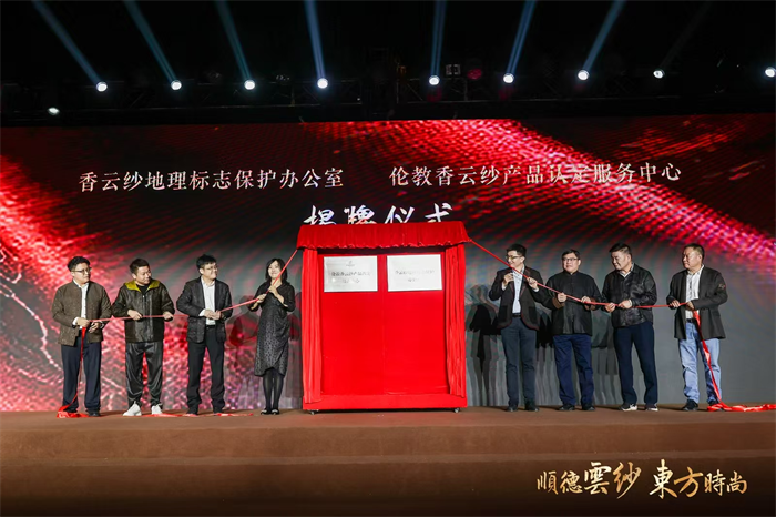 同日,“香云纱地理标志保护办公室”与“伦教香云纱产品认定服务中心”在顺德香云纱国际时尚产业园正式揭牌成立。两机构将依托广东省质检院的专业力量,为企业提供产品等级评定、质量检测、地理标志使用指导等一站式服务,进一步强化“顺德香云纱”的原产地信誉与品牌保护能力,为产业长期健康发展构筑坚实保障。
