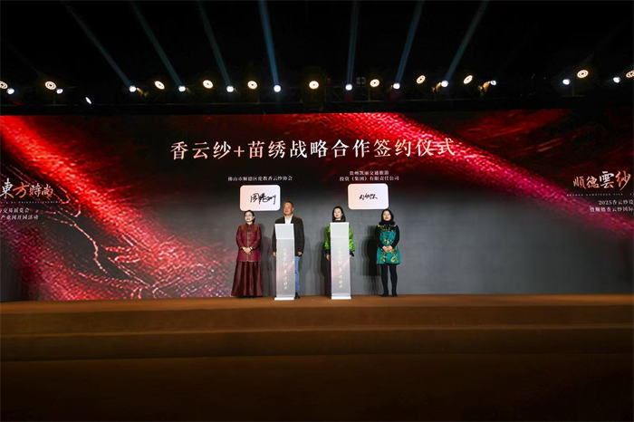 与此同时,为响应国家文化传承创新及区域协作发展战略,依托佛黔协作政策优势,伦教香云纱协会与贵州凯丽交通旅游投资(集团)有限责任公司正式达成战略合作关系,双方将共同探索香云纱与苗绣、银饰、蜡染等非遗技艺的创新融合路径。