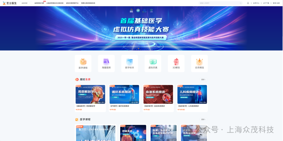 上海众茂医疗科技有限公司提供的虚拟仿真技术平台堪称 “赛场硬核支撑”!标本案例高度仿真,让选手仿佛置身医学实践现场,为赛事高质量开展筑牢技术根基。