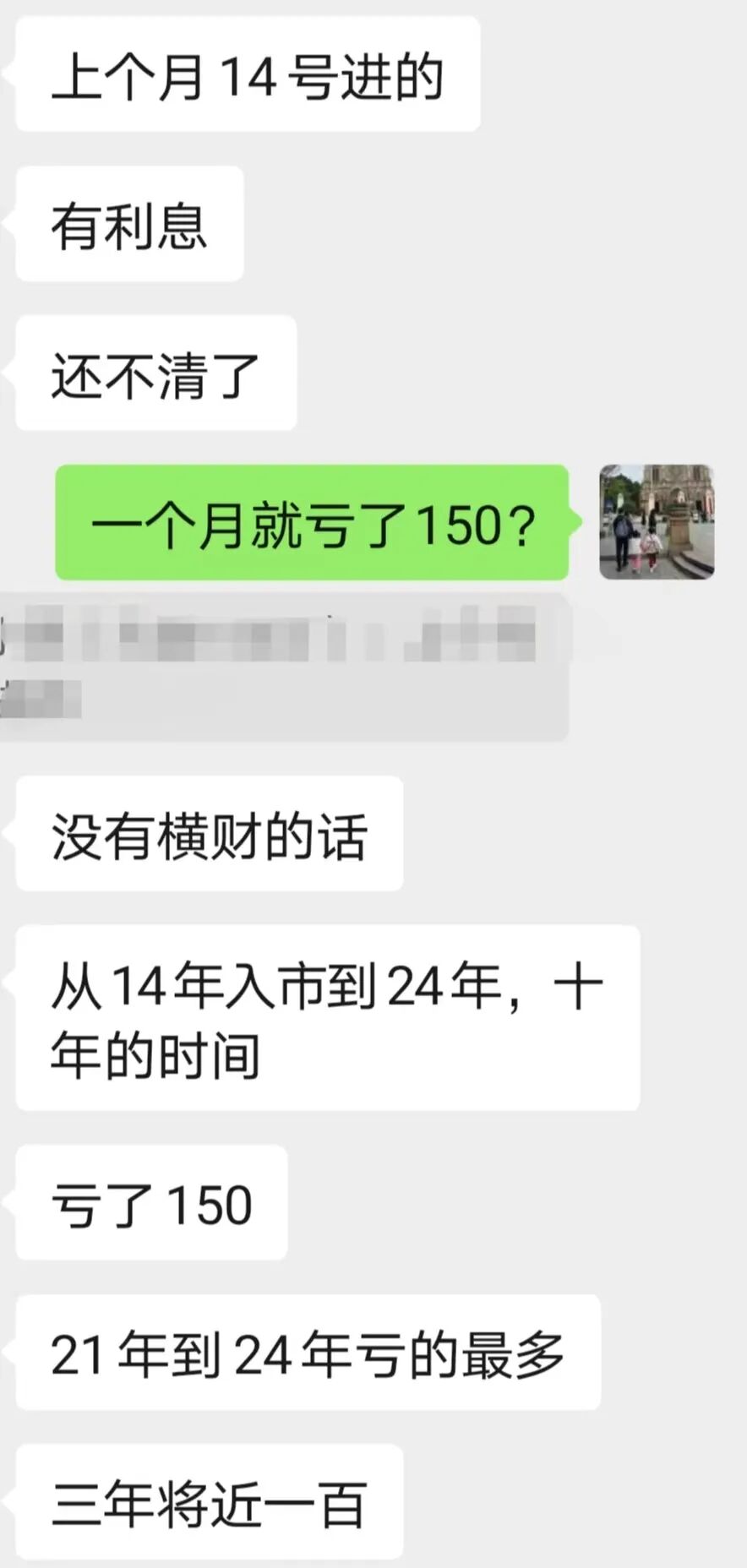 他是2014年进入A股的,10年时间一共亏了150万,最近3年就亏了100万。