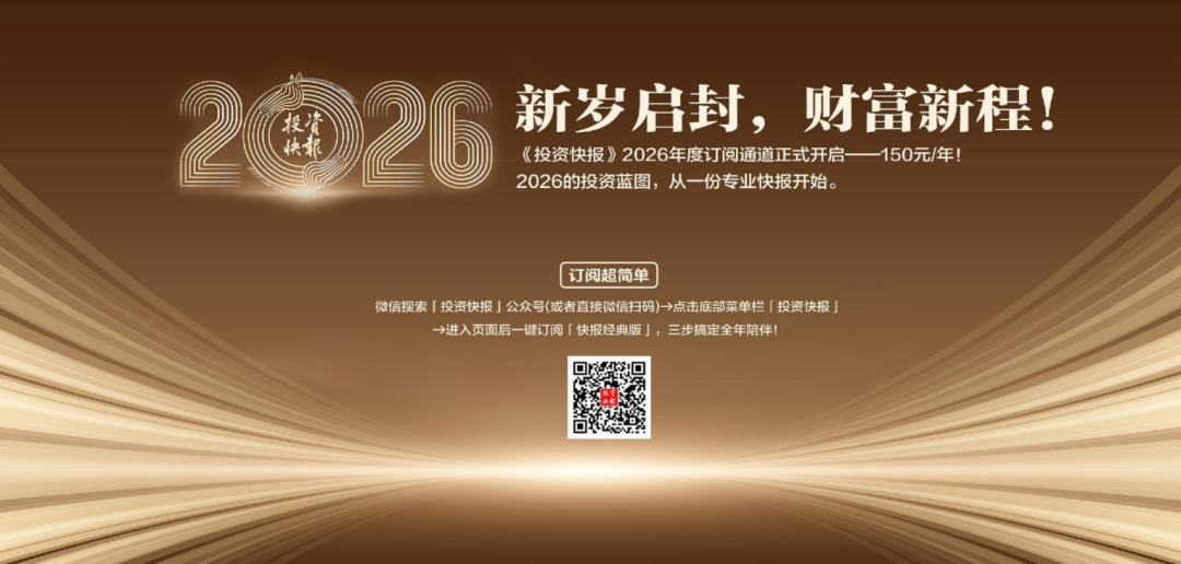 作为与投资者同行三十余载的财经媒体,《投资快报》始终坚守“传递价值信息,助力理性投资”的初心。新的一年,我们将继续扎根市场一线,采编团队将用专业的视角、鲜活的案例、深度的分析,持续追踪新质生产力发展动态,解读资本市场改革政策,挖掘细分赛道投资价值,为大家提供更具参考性的市场观察与投资建议。我们也将继续倾听读者心声,优化内容呈现形式,让复杂的财经信息变得通俗易懂,让专业的投资分析更接地气。