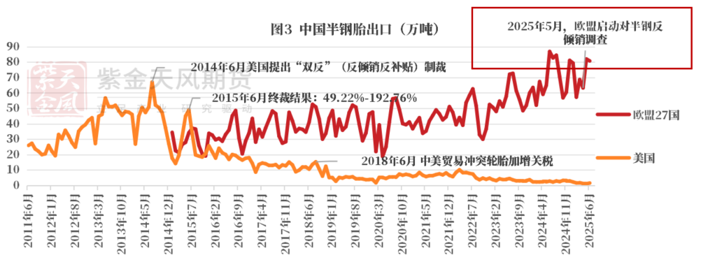 需求方面,5月21日,欧盟启动对中国轮胎的反倾销调查。中国轮胎出口约占国内橡胶消费的35%,欧盟是轮胎出口重要市场,此举引发了市场对轮胎出口受阻、进而削弱国内橡胶需求的强烈担忧,直接打击了市场情绪。