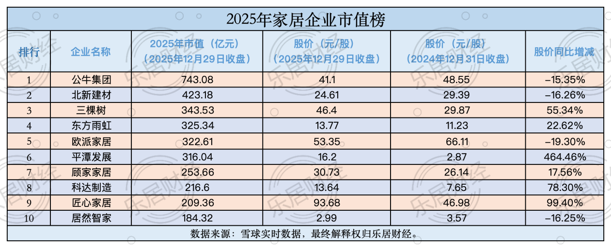 乐居财经将基于2025年家居企业市值榜,从行业格局、头部企业表现、股价趋势等维度展开分析,探索家居行业的发展现状与未来方向。