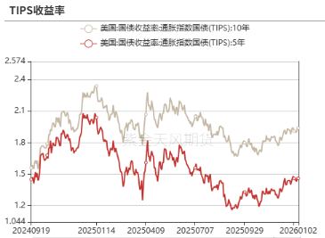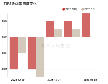 5年期和10年期TIPS收益率分化,5年期TIPS收益率收于1.46%,较前周持平;10年期TIPS收益率收于1.94%,较前周上行3bp。