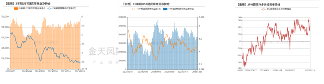 截至12.23的数据,长短端美债利率持仓偏空,2年期UST期货非商业净持仓空头增加11570手至1,362,703手;10年期UST期货非商业净持仓空头增加72262手至742370手。