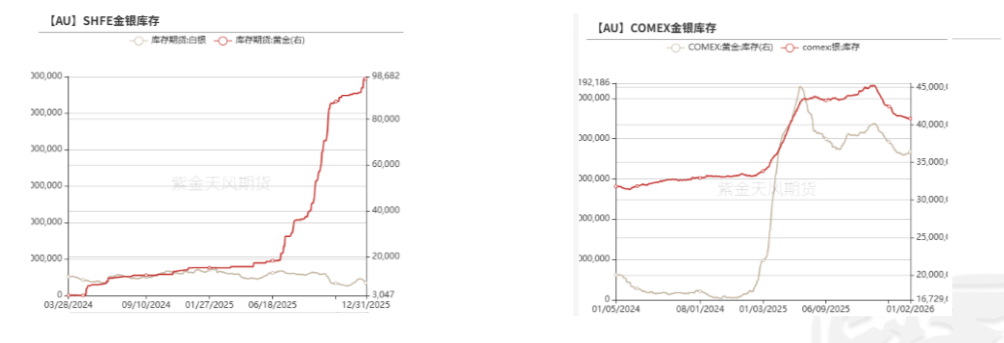 库存方面,上周COMEX黄金库存为3640.3万盎司,环比增加24.4万盎司,COMEX白银库存为44977.4万盎司,环比减少157.9万盎司;上周SHFE黄金库存约为97.7吨,环比增加3.9吨,SHFE白银库存环比减少182.9吨至669.5吨。