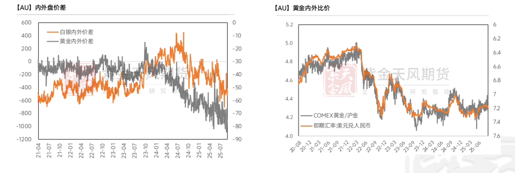 上周沪银快速拉涨阶段,白银内外盘价格最高升至-400左右,明显偏离均衡水平,后逐渐回落。