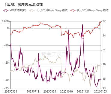上周日元3个月Basis Swap、欧元3个月Basis Swap环比上升,离岸美元流动性融资成本下降。