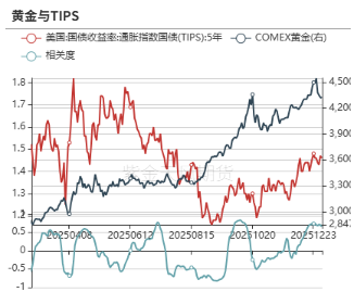从滚动相关性的角度来看,黄金与原油、铜的相关性变低,和美元指数的相关性变高。
