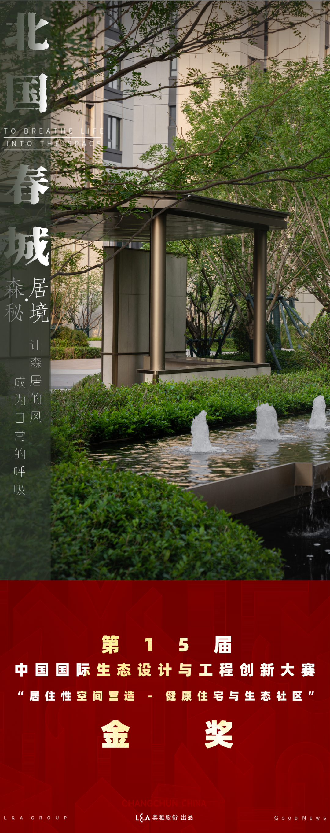 值得瞩目的是,该项目凭借在生态底色 + 人文底蕴 + 森居度假式居住空间” 的设计融合成功摘得艾景奖第 15 届中国国际生态设计与工程创新大赛 “居住性空间营造 - 健康住宅与生态社区” 金奖 ——我国生态设计与工程创新领域公认的 “权威标杆”,被誉为“设计界的奥斯卡”。