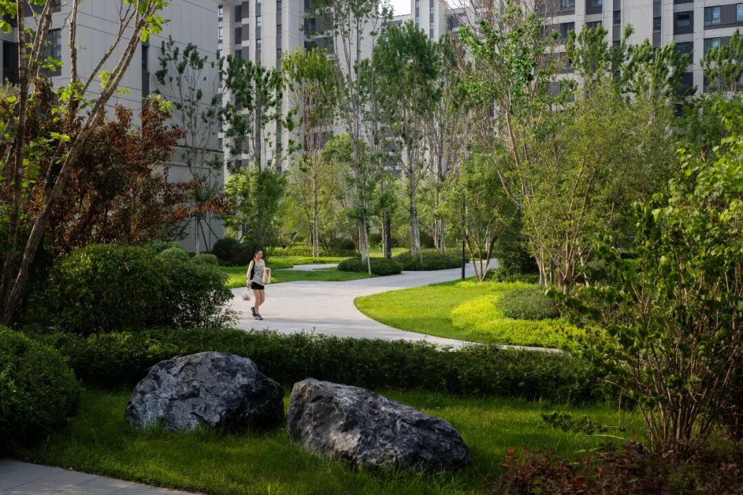 规则式列植打造礼仪轴线的庄重,自由式组团营造核心绿境的灵动,让社区春有繁花似锦,夏有浓荫蔽日,秋有彩叶斑斓,冬有绿意盎然,实现“推窗见公园,移步皆盛景”的居住体验。