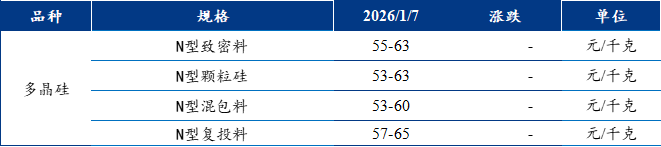 硅片环节报价暂未调整,183N/210RN/210N仍维持在1.4/1.5/1.7元/片。尽管报价持稳,但实际成交价格较上周小幅上移,部分成交已向报价高位靠拢。当前下游电池环节在银浆与硅片双重成本压力下持续酝酿涨价,部分头部企业报价已上探至0.4元/瓦,为硅片价格提供一定支撑。然而,受制于年末终端需求疲软及组件排产下滑,硅片整体出货节奏仍显谨慎,新单成交尚未放量,市场处于“有价少市”状态。