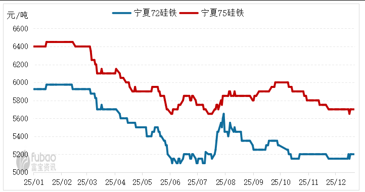近期硅铁市场宽幅波动,宁夏硅铁自然块周均价为5350元/吨,开工率保持平稳态势。供给端,12月青海结算电价出炉,其中鸿利通0.463元/度避峰降7厘,烁华0.391元/度满负荷,天利0.434元/度满负荷降6厘,烨华0.433元/度满负荷持平,但厂家利润仍未显著改善。需求端,1月河钢集团72硅铁招标定价为5760元/吨,环比上涨100元/吨,招标数量为3313吨,环比增加563吨,但钢企采购时压价仍较为明显。通过市场样本调研反馈,70%产业客户预估短期硅铁市场偏弱震荡为主,预估下周宁夏硅铁自然块周均价为5400元/吨,环比上涨0.93%。