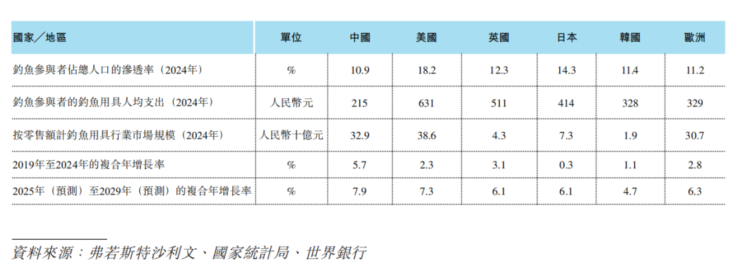 数据显示,2019年-2024年,中国的钓鱼参与者数量以5.2%的复合年增长率增长,已达到1.53亿名,在总人口中的渗透率约10.9%。