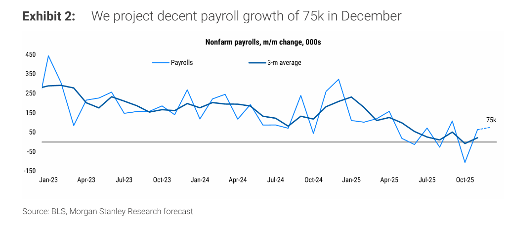 摩根士丹利Michael T Gapen团队则在7日的报告中给出了略显乐观的7.5万人预测。该行经济学家认为,尽管招聘速度较去年有所放缓,但并未出现裁员加速的迹象,目前的劳动力市场特征是“招聘缓慢,但无裁员”。此外,早前发布的ADP就业报告显示,12月私营部门新增就业4.1万人,虽略低于预期,但小企业在经历了11月的失业后已恢复招聘。