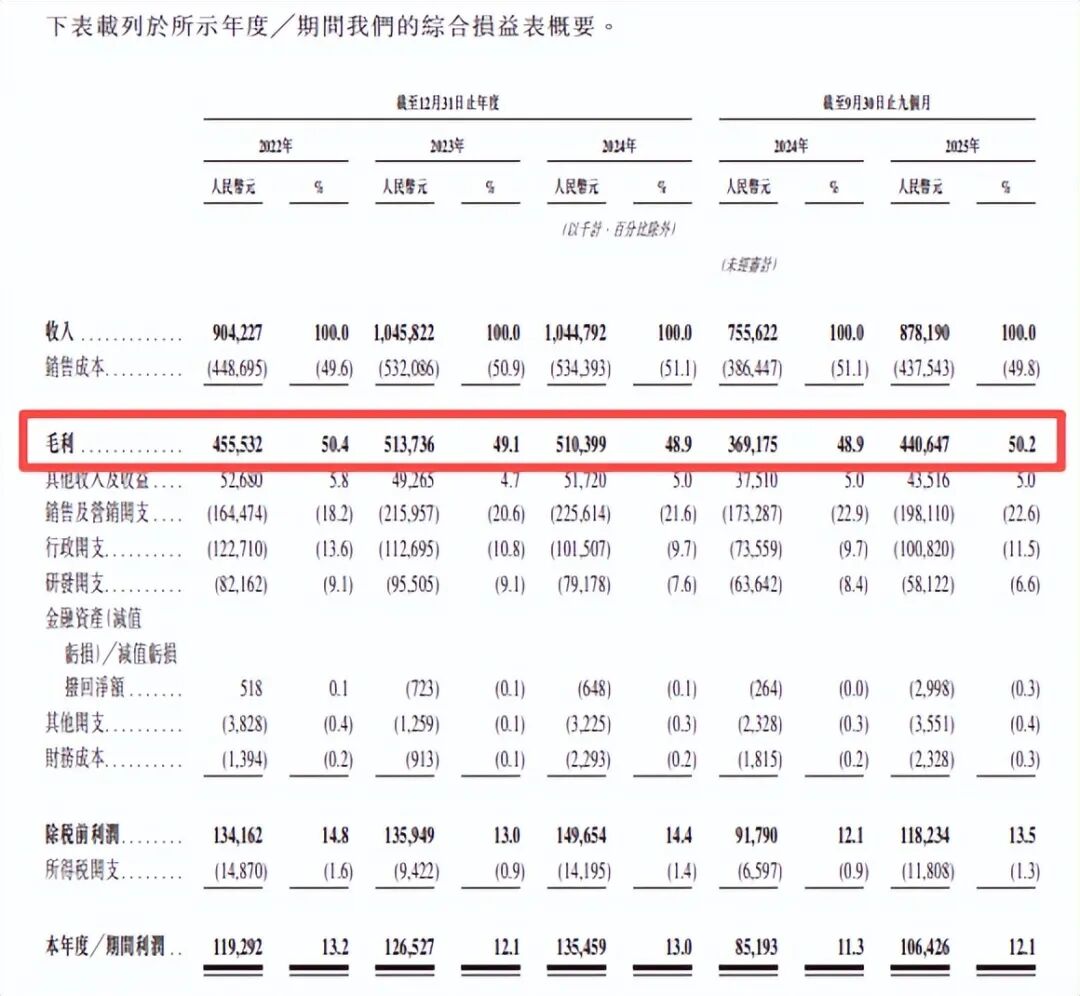 从盈利能力看,公司毛利率保持在50.2%的相对稳定水平,显示出一定的成本控制或品牌溢价能力。