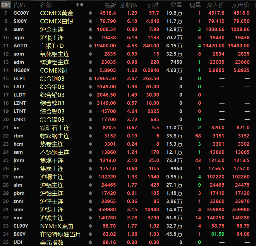 金属市场方面: