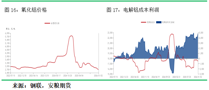 展望2026年,沪铝绝对价格高企,高利润不可持续,需重点关注2026年这一重要节点,牛市或将接近尾声,未来面临大级别的熊市行情。铝价运行的核心逻辑将从过去两年强现实、强预期下的结构性牛市,转向供应扩张、需求增速放缓、成本松动背景下的熊市周期开启,价格或将面临挑战。这是由于高利润不可持续,供需格局迎来根本性逆转。首先,从绝对价格和行业利润看,2024-2025年电解铝行业持续的高利润已对供应端形成强有力的正向激励。平衡表清晰地显示,尽管国内产量增速因产能天花板而放缓,但海外低成本产能的释放以及俄铝持续流入,共同推动总供应持续攀升。与此同时,需求侧虽然以新能源汽车和光伏为代表的新兴领域用铝量维持增长,但其增速难以覆盖传统领域特别是建筑用铝的缩减。最终市场将从2024年紧平衡明确转向2026年的实质性过剩,这意味着过去支撑价格的低库存基础将被动摇。其次价格下行压力将来自库存累积与成本坍塌的双重挤压。随着供需平衡的逆转,显性库存预计将从当前的历史低位进入累积周期,市场预测2026年可能累库至80万吨以上,库存消费比上升将系统性压制价格溢价。更为关键的是,成本端支撑预计将显著弱化。一方面,海外能源价格已从峰值大幅回落,降低海外电解铝边际成本;另一方面,阳极等原料价格在供需宽松下面临下行压力。电解铝现金成本区间可能下探,使得当前的价格和利润水平显得异常脆弱。当供应过剩成为现实,高利润必将通过价格下跌的方式被挤出。