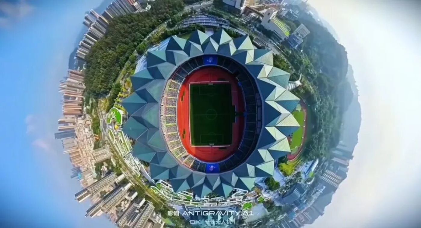 有的博主操纵着全景无人机,从武汉的钥匙大楼中间飞过,视觉扭曲的建筑物让人眼晕;还有人让无人机飞过体育馆上方,类似鱼眼的地球影像中,一朵鲜花似乎正在绽放。