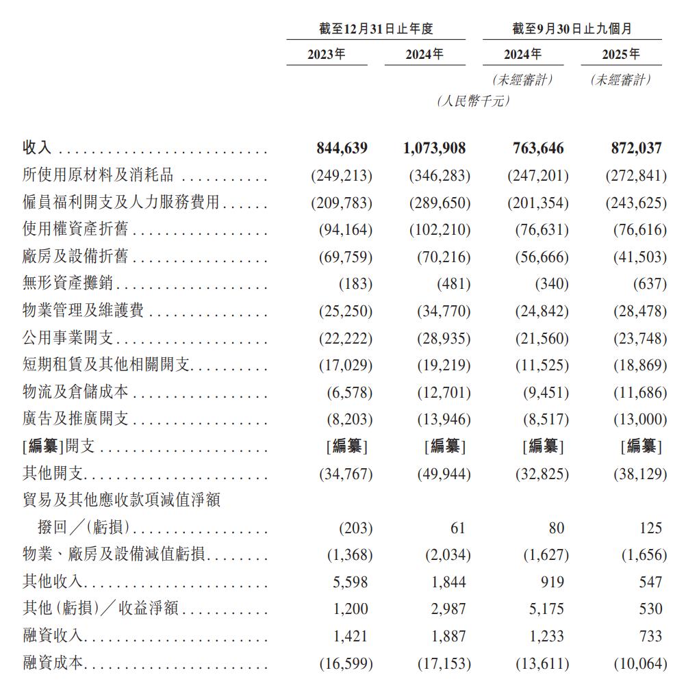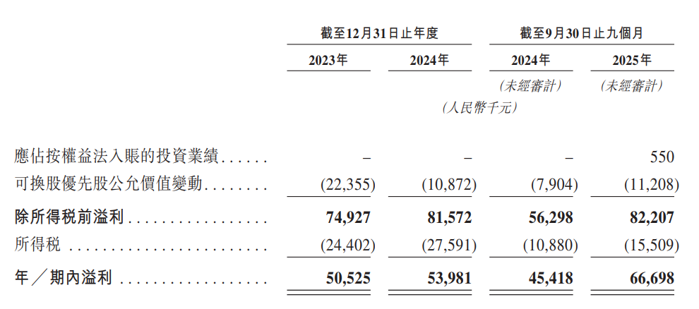 公司于2023年度、2024年度、2025年截至9月30日止九个月分别录得溢利为5052.5万元、5398.1万元、6669.8万元人民币。