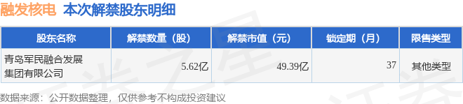 融发核电(002366)5.62亿股限售股将于1月13日解禁,占总股本27%